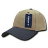 The Low Crown Structured Jute Hat is a 6-panel baseball cap featuring a crown made of a beige jute material. It features a cotton sweatband, retro snapback closure, a pre-curved cotton visor, eyelets, and a button on the crown.