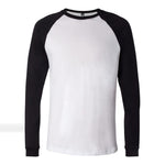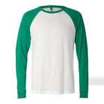 The BELLA+CANVAS 3000 Long Sleeve Jersey Baseball Tee offers a classic look with contrast color raglan sleeves, cuffs, and neck trim. Made from soft, durable Airlume combed and ring-spun cotton, this pre-shrunk tee provides a retail fit for a flattering and comfortable wear. Side-seamed construction and a tear-away label add to its premium feel.