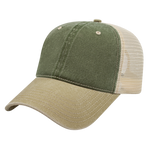 - Washed pigment dyed cotton twill with washed trucker mesh