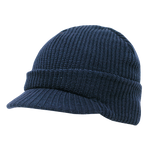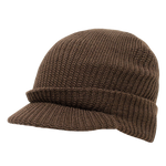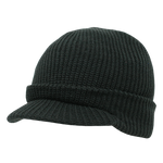 The Decky 605 - GI HybriCap Beanie, Knit Cap, Jeep Cap is a cuffed, snug-fitting beanie featuring a crocheted thick ribbed design and a short, pre-curved visor.