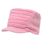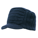 The Knitted Flat Top Cap with Visor, Knit Beanie (Decky 615) is a stylish, knitted cap featuring a flat top, thick ribbed construction, and short visor.