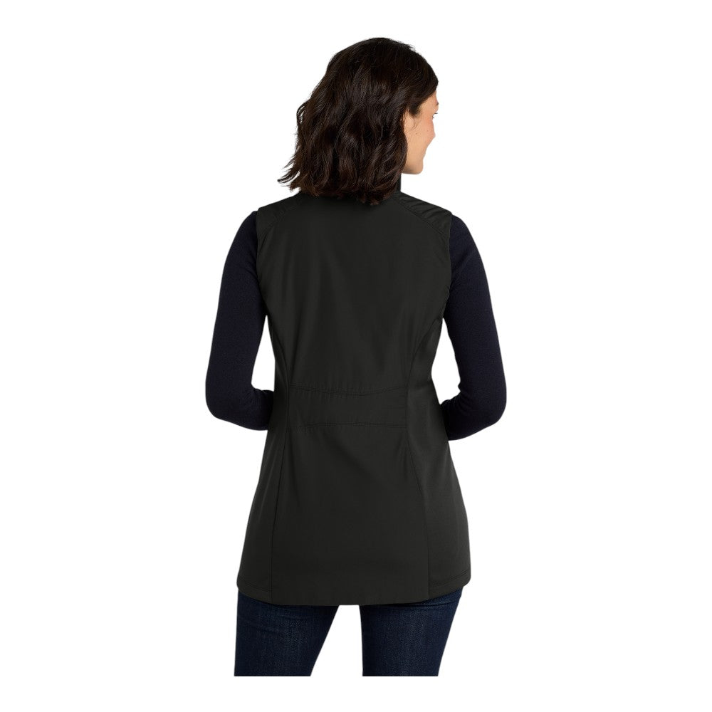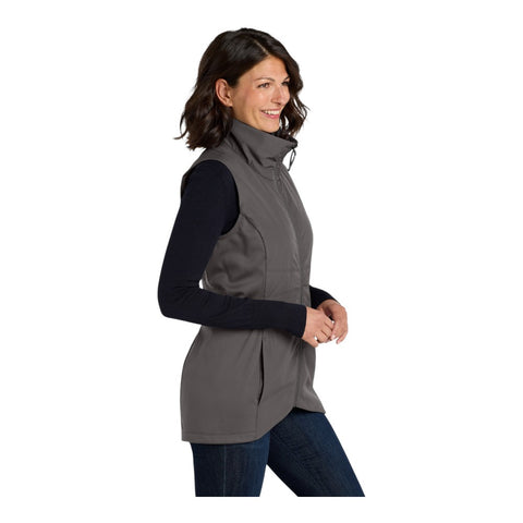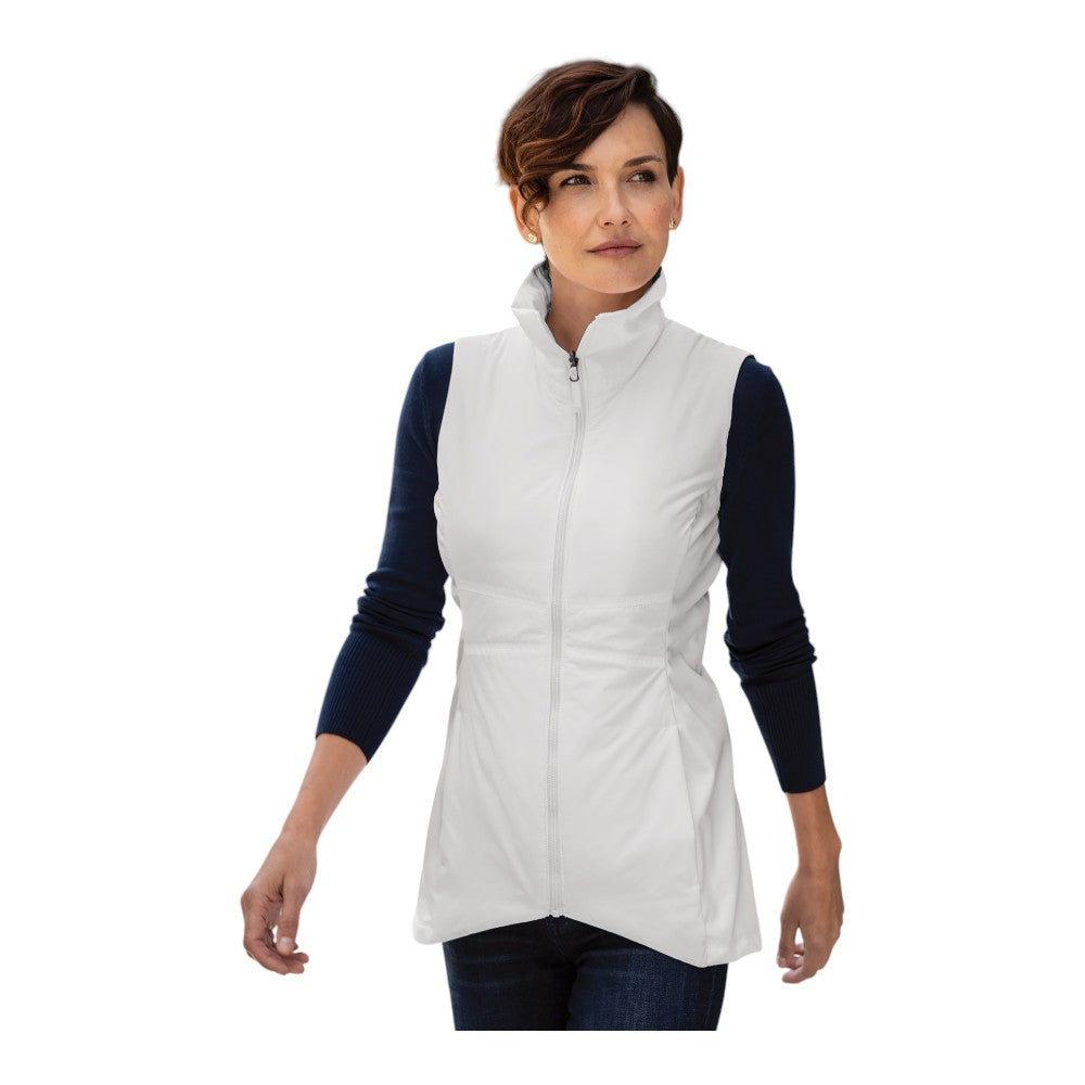 Designed for versatile layering, this insulated vest combines quilted warmth with flexible soft shell side panels. Its flattering fit and weather-resistant construction make it a cozy choice for both work and casual wear. Part of the Collective system, it can be worn alone or zipped into compatible outer layers.