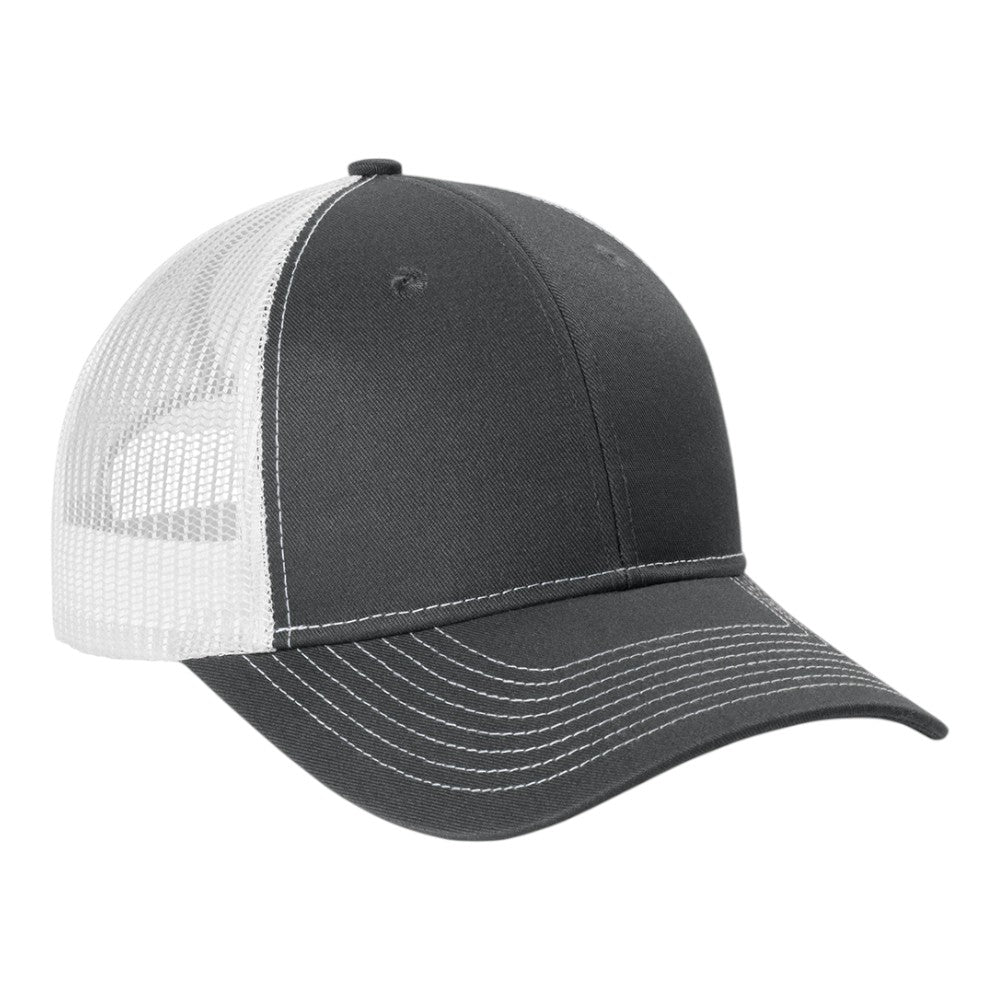 • 65/35 polyester/cotton twill front panels (Heather Grey)