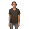 This unisex V-neck t-shirt is made from a comfortable blend of 50% combed ring-spun cotton and 50% polyester. Designed for durability and style, it features a ribbed collar, double-needle stitching, and side-seamed construction for a flattering fit. Made in the USA, this versatile tee is ideal for casual wear and customization.