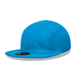 The 5-Panel Racer Racing Jockey Hat, Camper Cap Performance Mesh is a lightweight 5-panel cap made of a stretchy mesh fabric. It features an integrated sweatband, a flat bill and an adjustable plastic press-type closure.