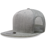 The 5 Panel Trucker Cap, Snapback Flat Bill Hat is a structured cap with a solid front panel and 4 rear mesh panels. It features an integrated cotton sweatband, a flat bill and is finished with a plastic snap closure for a perfect fit.