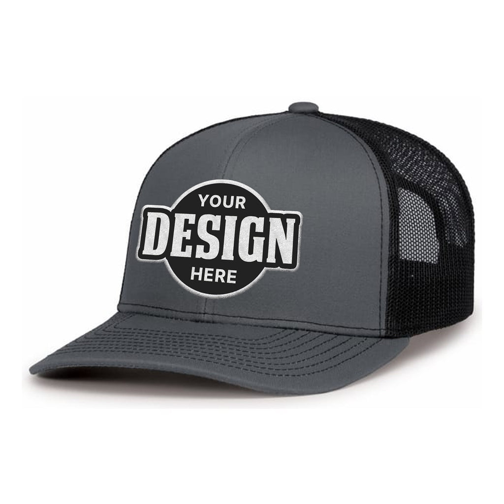 Custom Embroidered Pacific Headwear 104S Contrast Stitch Trucker Snapback Hat - Flat Embroidery