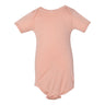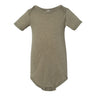 The BELLA+CANVAS 134B Infant Triblend Short Sleeve One-Piece is made from a soft and durable blend of polyester, Airlume combed and ring-spun cotton, and rayon. Featuring an envelope neck and snap leg closure, this pre-shrunk one-piece is designed for comfort and convenience. Its side-seam construction ensures a snug, well-fitted shape, and the tear-away label adds to its comfort.