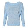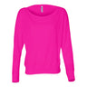 This women’s flowy off-shoulder long sleeve tee combines style and comfort with its soft 65/35 polyester/viscose blend. Offering a relaxed, drapey fit, it features ribbed cuffs and waistband for a stylish touch. The dolman sleeves and seam up the center back add unique details, making this tee a flattering and trendy option for casual wear.