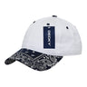 The Lot of 12 Decky Bandanna Bill Paisley Baseball Hat Cotton Dad Cap Bulk is a low profile 6-panel relaxed cap, made of 100% cotton. Cap features a paisley bandana print design on the pre-curved visor, back closure and top button. Comes with contrasting stitched eyelets, cotton sweatband and is finished with an adjustable buckle closure that provides a customizable fit.