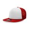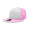 The Blank 2-Tone Flat Bill Foam Trucker Hat is a constructed, 5-panel cap with a white polyester foam front and a colored mesh back. It features an integrated cotton sweatband, a flat bill and an adjustable plastic snap closure.