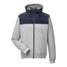 The Nautica N17582 Men’s Navigator Full-Zip is a versatile fleece jacket designed for everyday comfort with added weather protection. Crafted from a soft 60% cotton and 40% polyester fleece, it features water- and wind-resistant nylon panels on the shoulders and hood for enhanced durability. Nautical details like the striped hood liner, branded zipper pulls, and striped ribbed cuffs and hem give this piece a classic maritime look, while functional elements ensure all-day comfort.