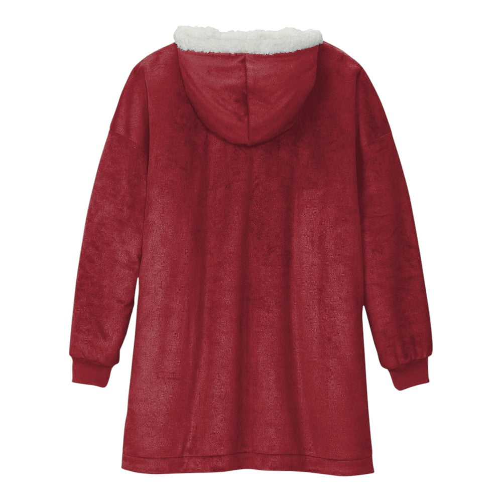Wrap yourself in comfort with this oversized, hooded poncho made from luxuriously soft polyester fleece and faux shearling. Perfect for chilly nights at home or outdoor events, this wearable blanket offers warmth and style with side-entry pockets and rib-knit cuffs.