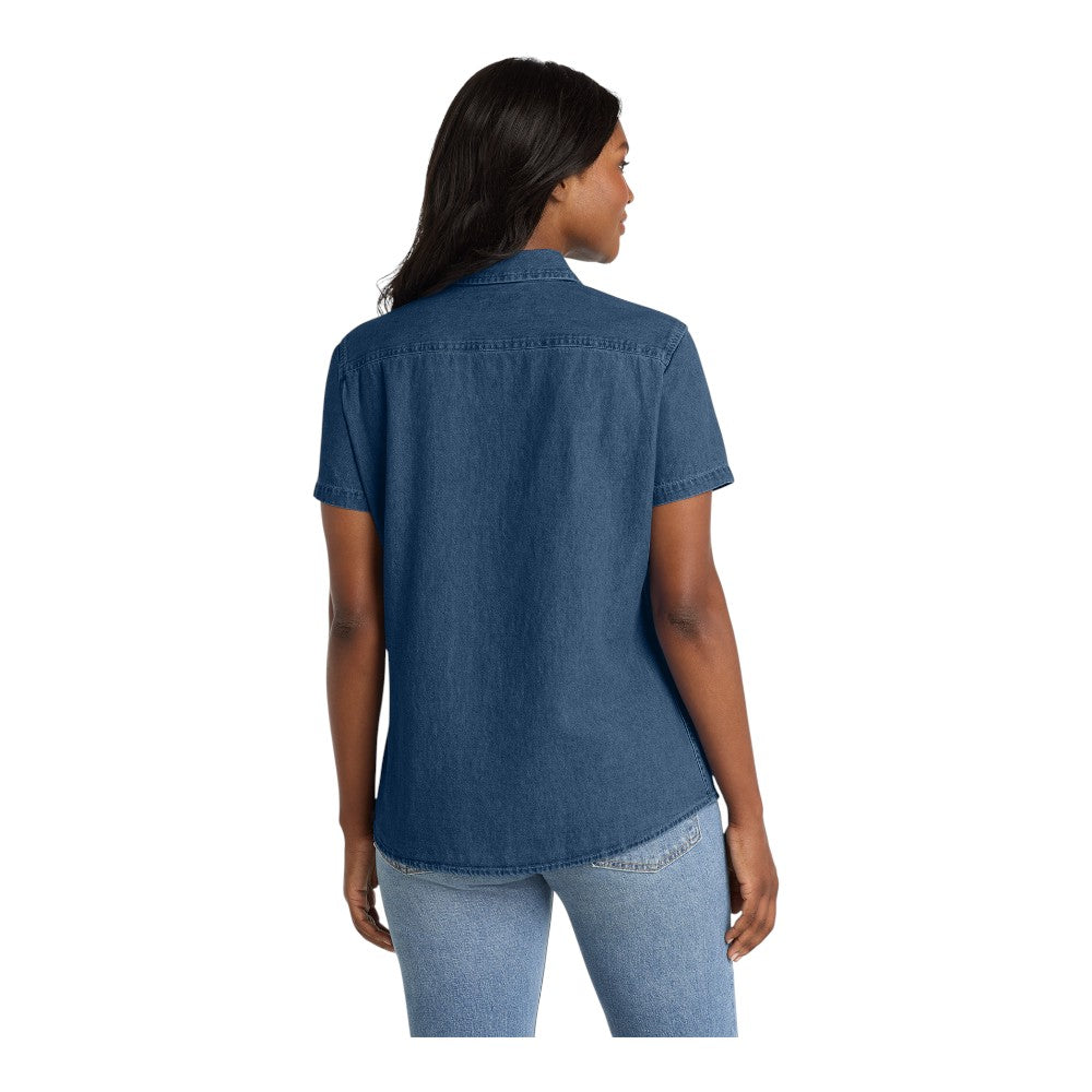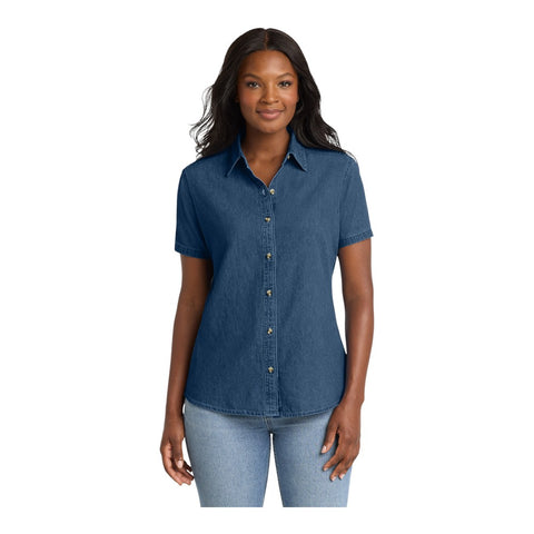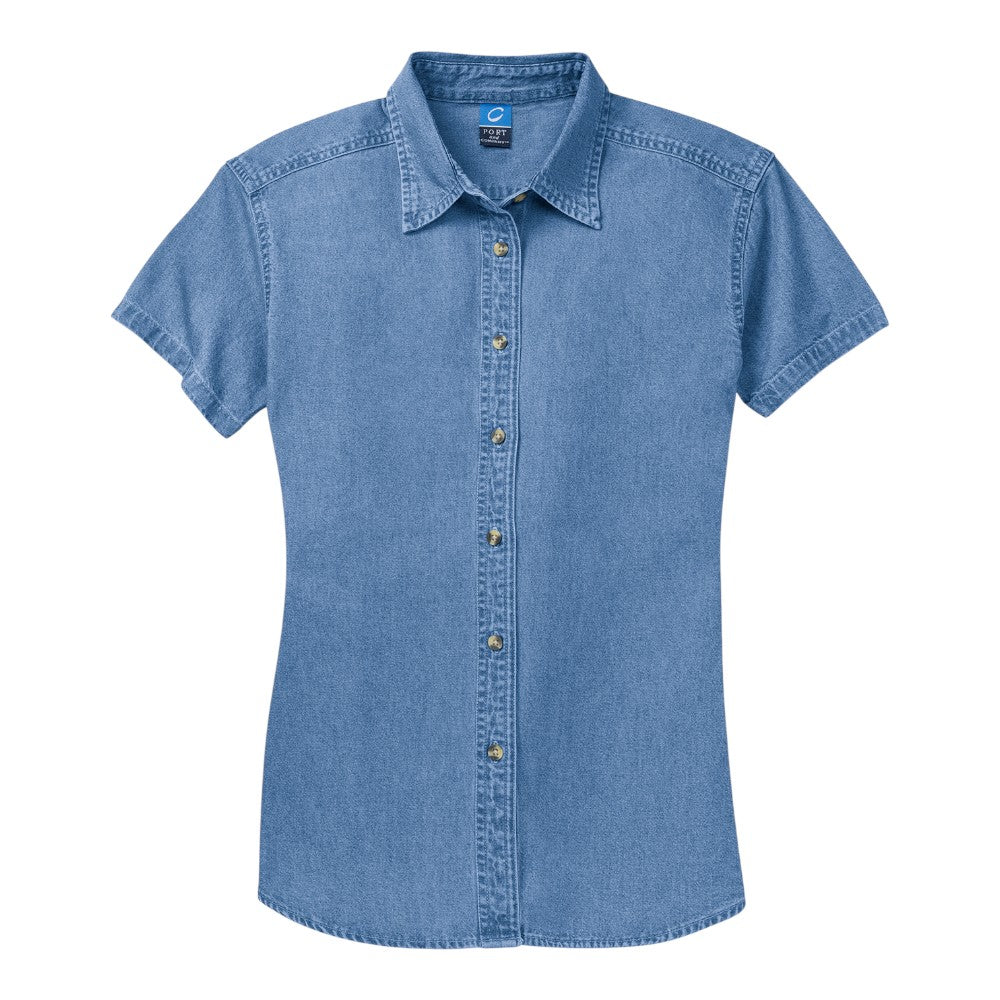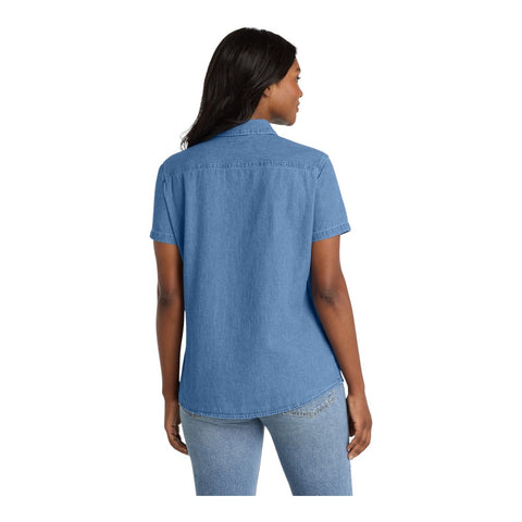 ADD YOUR OWN LOGO/DESIGN/TEXT Get Custom Quote Port & Company LSP11 Women's Short Sleeve Value Denim Shirt