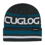 The Kailash Beanie by CUGLOG, is a long cuffed beanie with a brand logo on the crown, lightweight fabric and features a braided style design with stripes.