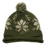 The Decky 611B - Snowflake Roll Up Beanie with Pom Pom, Knit Cap is a snug-fitting beanie featuring a snowflake pattern, rolled cuff, and two-tone pom pom.
