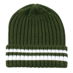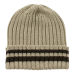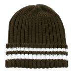 The Decky 622 Sweater Beanie Knit Cap is a thick ribbed beanie featuring a contrasting stripe design on the cuff.
