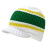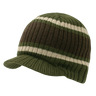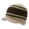 The Striped Jeep Knit Beanie Cap - Decky 620 is a soft, knitted beanie cap and features stylish, three-tone coloring and a pre-curved visor.