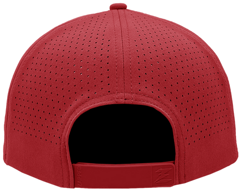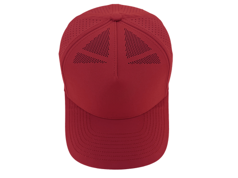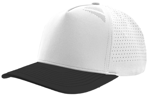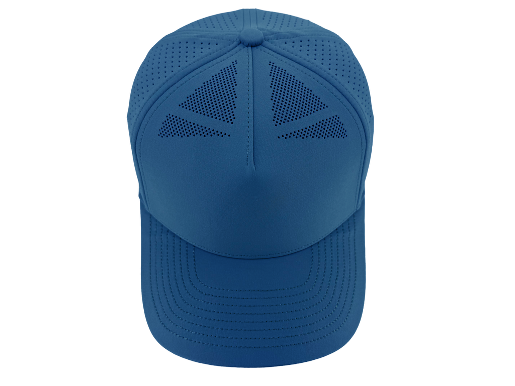 Perforated panels spandex fabric with 1 inch break for optimizing decoration space on side of hat