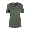 - Single jersey heather fabric for a soft feel with self v-neck collar