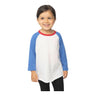 The 17660 toddler raglan tee is a playful and comfortable staple, featuring classic 3/4 sleeves and a rounded bottom for a sporty look. Made from a soft cotton-poly blend, it’s perfect for everyday wear, playtime, or custom decoration. Made in the USA.