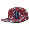The Zebra/Tiger Snapback Flat Bill Hat - Decky 1060 or Ziger Snapback is a 6-panel constructed cap which features a unique fully striped "Ziger" print design. This stylish cap has a comfortable sweatband, stitched eyelets, a retro flat bill and is finished with an adjustable plastic snapback closure.