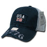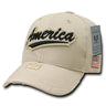 Show off your patriotism by sporting one of our unique, vintage style USA America Baseball Caps (A01). The front of each cap contains an embroidered or applique logo and is closed with a Snap Back or antique brass buckle.