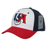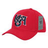 The USA America Baseball Hat (A14) features 3-D High Definition embroidery, pre-curved bill, cotton sweatband and is finished with an adjustable brass buckle closure. Mixed Inventory: 100% Cotton or 100% Acrylic.
