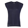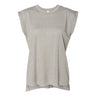 The Women's Flowy Rolled Cuffs Muscle Tee combines comfort and style with a relaxed, drapey fit and trendy rolled cuffs. Made from a soft polyester-viscose blend, this tee features a hi-low raw bottom hem that adds a casual yet chic touch. Perfect for layering or wearing on its own, the side seams provide structure, while the tear-away label ensures all-day comfort.