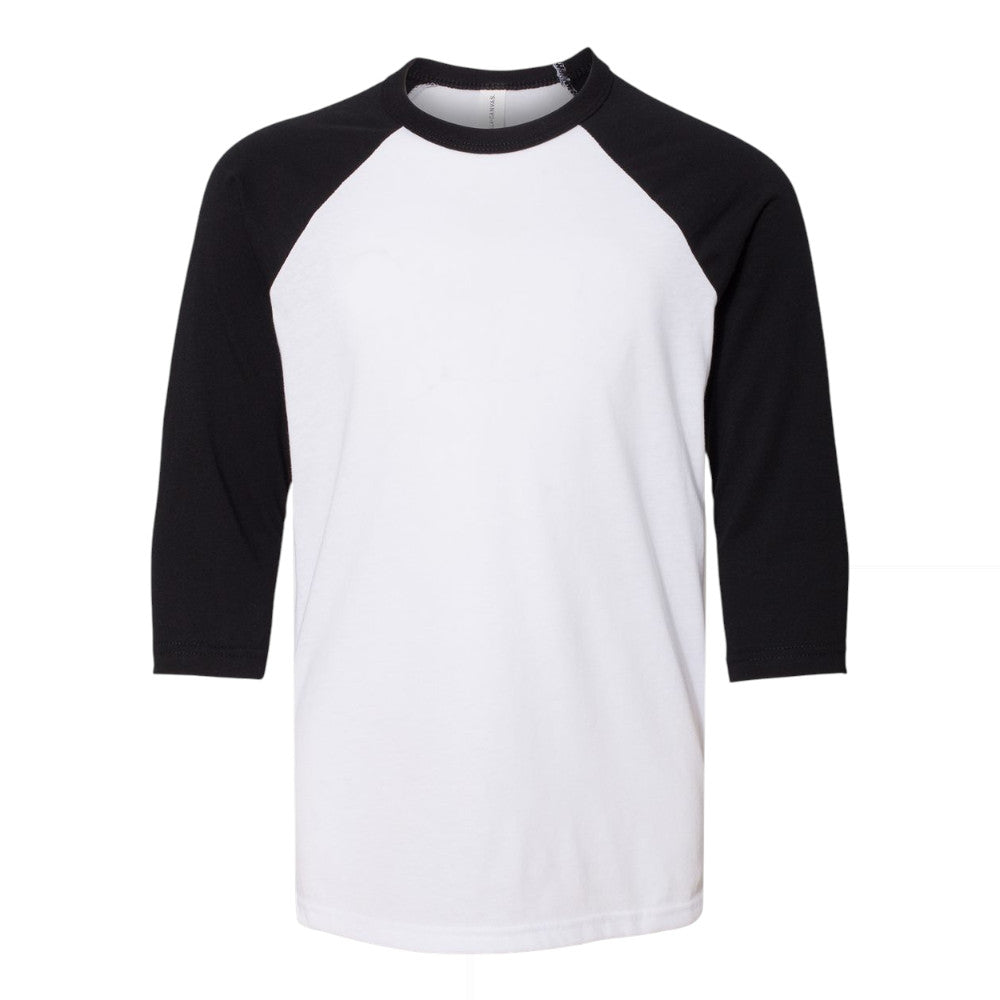The BELLA+CANVAS 3200Y Youth Three-Quarter Sleeve Baseball Tee is made from a soft blend of Airlume combed and ring-spun cotton and polyester, providing lasting comfort. With contrast raglan sleeves and collar, this pre-shrunk tee features side-seamed construction and a tear-away label for extra comfort, making it perfect for active kids.