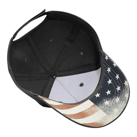 This 5-panel brushed cotton hat features a classic structured low crown paired with a standout vintage USA flag printed undervisor. Made from heavy brushed cotton twill, it offers a soft yet durable feel suitable for everyday wear or custom embroidery. The looptape closure provides easy adjustability, making it a great choice for patriotic events, retail, or promotional branding.