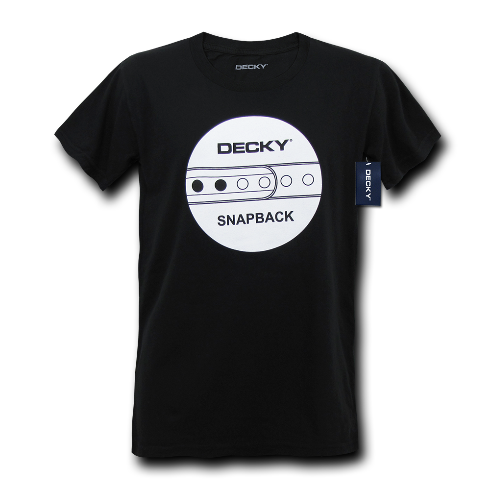 The Snapback Tee, Decky T-Shirt (725 Tee) is a lightweight, soft and durable high quality short sleeve cotton t-shirt featuring our own Decky Snapback logo printed on the front, with double-needle stitching and shoulder-to-shoulder taping. Be sure to show off your style with these modern and casual look crewneck tees.