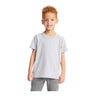 This toddler crewneck tee offers a soft, comfortable fit crafted from 100% combed ring-spun cotton, with Heather Grey featuring a 90/10 cotton-polyester blend. Designed for durability and everyday wear, it features quality stitching and a tear-away label for added comfort. Made in the USA.