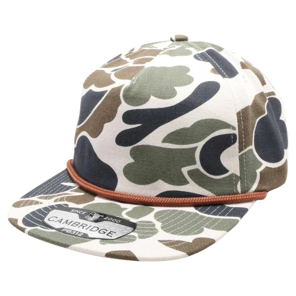 The PB312 Old School Camo Unstructured Rope hat combines a classic camouflage pattern with an unstructured fit for a relaxed, vintage look. Accented with a rope detail across the front, this hat exudes a timeless, rugged style perfect for outdoor adventures and casual wear.