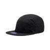 The Classic Canvas Jockey Camper Cap is a 5 panel cap. This flat bill cap features self-fabric sweatband and elastic adjustable clip closure. Made with 100% cotton. One size fits most.