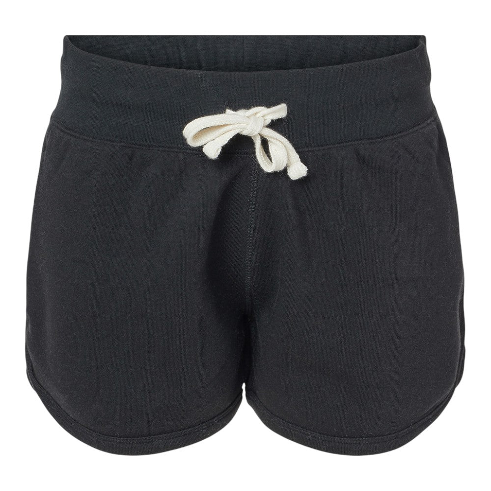 The J. America 8856 Ladies Triblend Fleece Short is a stylish 7.5 oz short made from 55% cotton, 39% polyester, and 6% rayon triblend fleece for a soft, breathable feel. The tie-dye version is made from 55% cotton and 45% polyester fleece. These shorts feature a 3" inseam, side hand pockets, and a dolphin hemline for a flattering fit. Off-white flat drawcords (white on tie-dye) and 1x1 ribbed cuffs and waistband provide a comfortable, secure fit. The tear-away label allows for easy customization.