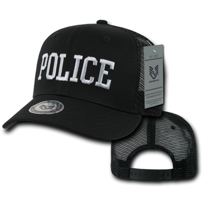 The Police Trucker Hat Mesh Baseball Cap Officer Cop Law Enforcement (Rapid Dominance S77) is a 6-panel, constructed cap featuring a mesh back and high quality embroidery of various military/law enforcement agencies. These caps also include a cotton sweatband, stitched eyelets, and a curved bill. Comes with an adjustable plastic snap closure for a perfect fit.