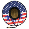 It's made of 100% straw with a brim that measures 4.5" and is one size fits most. Features include a USA flag/water print under the brim and an elastic sweatband. This is perfect for wearing on a day at the beach, by the pool, gardening, or on a picnic.