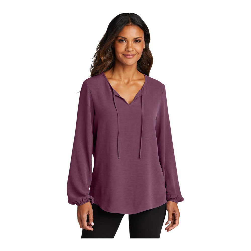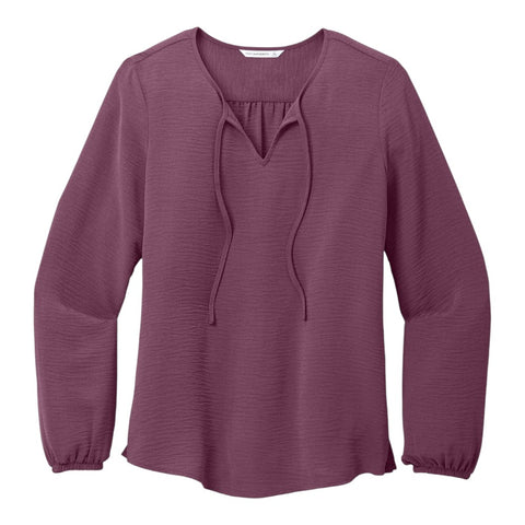 The Port Authority Women's Textured Crepe Blouse offers a flowy, comfortable fit with a refined touch. Made from lightweight textured crepe, it drapes beautifully for a professional yet relaxed look. A fresh neckline with self-fabric tie and subtle details enhance its sophisticated style.