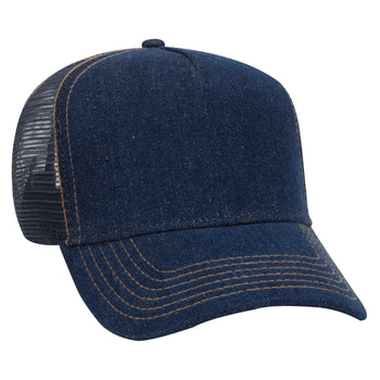 Decky 1082 5 Panel Denim Trucker Hat, Flat Bill Mesh Back Cap