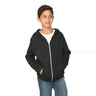 This youth zip hoodie, made from a soft blend of 50% combed ring-spun cotton and 50% polyester, offers comfort and warmth with a stylish look. Featuring a metal zipper, kangaroo pocket, and ribbed cuffs, it’s perfect for layering or casual wear. Proudly made in the USA, it’s sure to become a favorite sweatshirt for your little one.