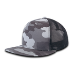 The Lot of 12 Decky 5-Panel Trucker Snapback Hats Flat Bill Mesh Caps Bulk is a constructed cap featuring a stylish and special 5 panel design created by combining the two front panels. The cap also sports a cotton sweatband, stitched eyelets, nylon mesh rear panels, a retro flat bill and is finished with a plastic snapback closure.