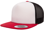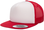 Yupoong 6005FW Foam Trucker Mesh Snapback Hat, Flat Bill Cap - White Front