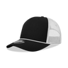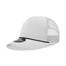 The Classic 5 Panel Retro Trucker hat w/Rope features 1 solid front panel with a rope and 4 rear mesh panels. It has a cotton sweatband, a pre-curved bill and is finished with a plastic snap closure.