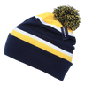 The Two Tone Pom Pom, Knit Beanie - Decky 690 is a long, cuffed beanie designed with a striped pattern and a two-tone pom pom on the crown. The cuff can be rolled down for those who like a little extra length. This soft beanie is great for both winter and everyday wear.