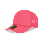 The Neon Foam Trucker Cap, 5-Panel Mesh Back Hat is a constructed, 5-panel cap with a foam front and rear mesh panels. It comes in 4 bold neon shades and features an integrated cotton sweatband, a curved bill, and an adjustable plastic snap closure.