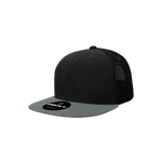 The Kids, Youth Trucker Hat, Flat Bill Snapback is a structured 6-panel cap specifically designed to fit youths. It features sewn eyelets, a retro flat bill, rear mesh panels, and a plastic snapback closure to ensure the perfect fit.