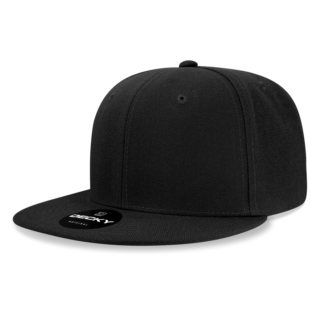 The Basic High Profile Snapback Hat, 6 Panel Flat Bill Cap is a 6-panel, constructed baseball cap featuring a retro flat bill, stitched eyelets, and a plastic snapback closure.