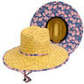 Classic straw lifeguard hat with tropical stripe floral print on underbrim. One Size Fits Most. Made by Goldcoast Sunwear, a Peter Grimm company.