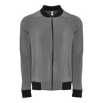 Solid black ribbing on neck and cuffs for a classic bomber look